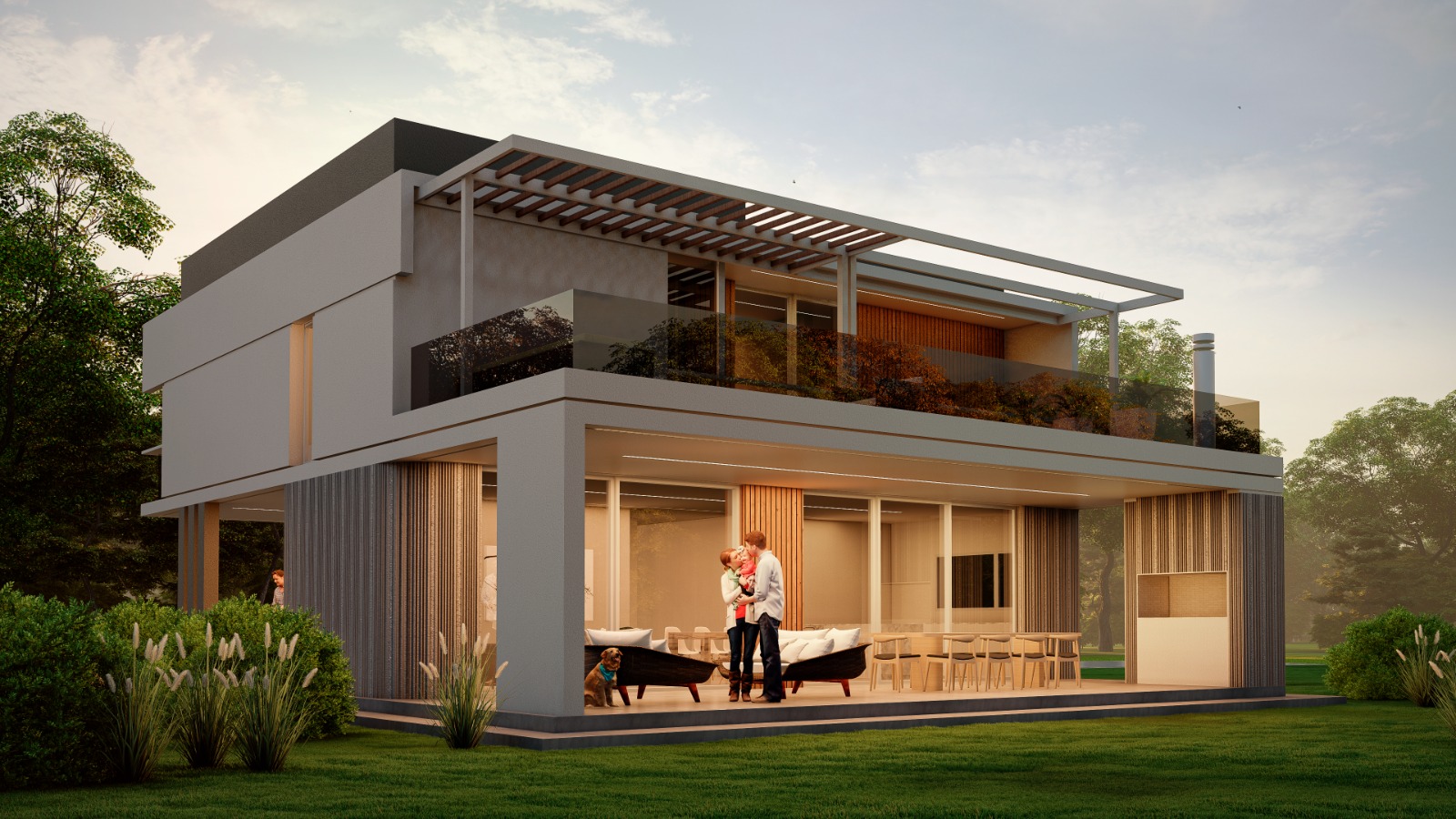 117 – VCA A25 opción 2 4 agosto, 20254 agosto, 2025PORTFOLIODeja un comentario Vivienda de dos plantas en Cerro azul, 249.83 m² construidos en 484.72 m² terreno. Espacios cómodos y modernos con materiales premium. Cocina comedor y living vinculado con galería. Gran balcón terraza en planta alta.